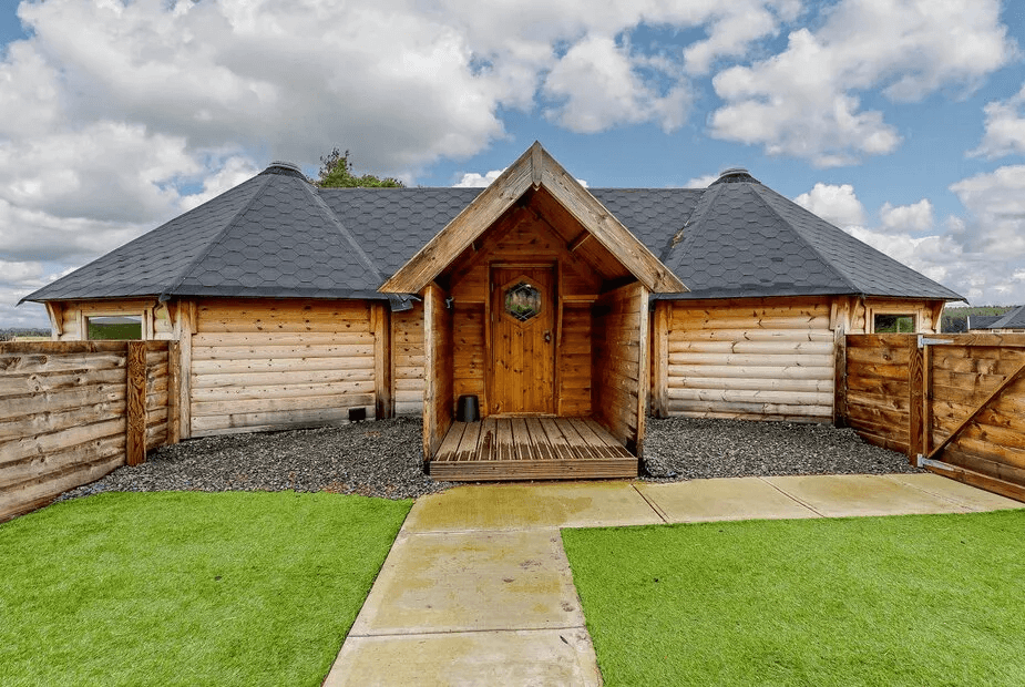 What’s quirky? A classic log cabin experience, but with a twist. This place sits on a working farm, so you can spend your days greeting the resident alpacas, sheep and goats. Or, head out and explore the walking trails of nearby Tinto Hill. Then come back for a soak in your private hot tub, which looks out over the surrounding fields and woodland. You can book your dog, too – there’s even an off-lead exercise field for them to burn off every last bit of energy. Plus, the owners have also created an indoor barbecue hut for when the Scottish weather isn’t playing ball.