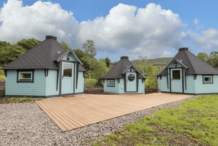 What’s quirky? This studio-style lodge near Kyle of Lochalsh is all about panoramic Highland views and pure peace and quiet. The wooden cabin is compact but cleverly designed with a king-size bed, kitchen and a comfy front deck where you can sip your coffee while gazing towards the Isle of Skye. The shared hobbit-style hut next door adds an extra bit of character – it’s kitted out with seating, a drying line for all your outdoor gear and a recycling station.